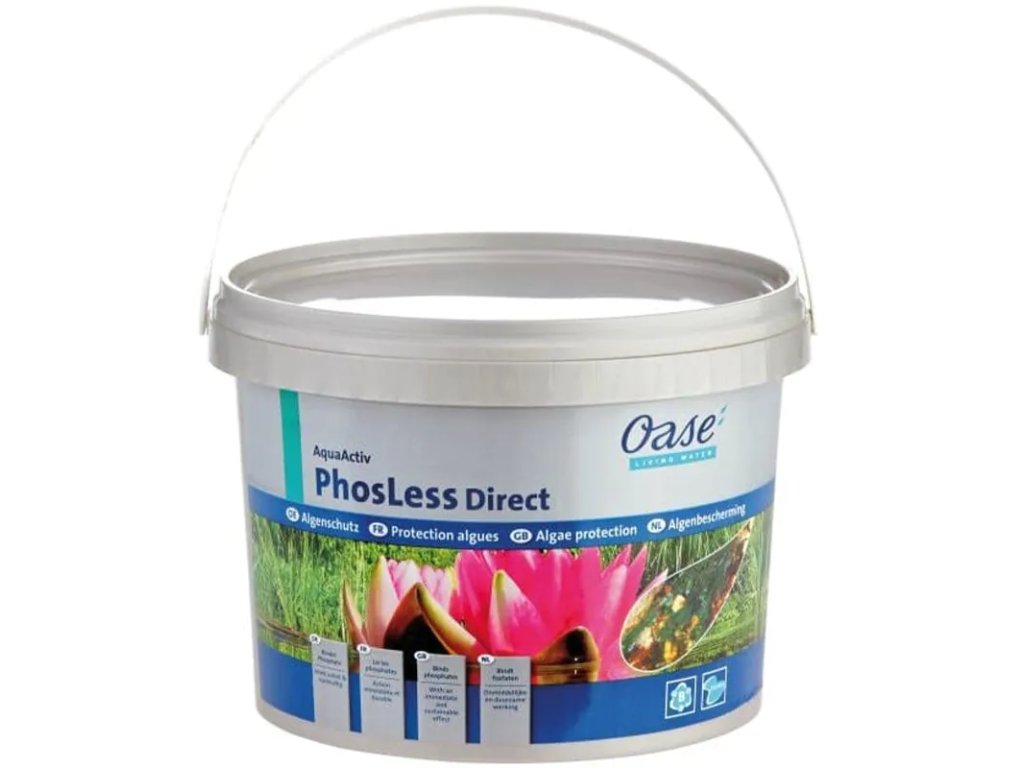 Oase PhosLess Direct je vysoce účinný absorpční přípravek určený k okamžitému a efektivnímu snížení hladiny fosfátů v jezírkové vodě. Fosfáty jsou hlavní živinou pro řasy, a jejich odstraněním dochází k přirozenému zastavení růstu vláknitých i jednobuněčných řas. Kromě fosfátů dokáže tento substrát na svůj povrch vázat i sirovodík, který je často příčinou nepříjemného zápachu vody, čímž výrazně zvyšuje komfort u jezírka.