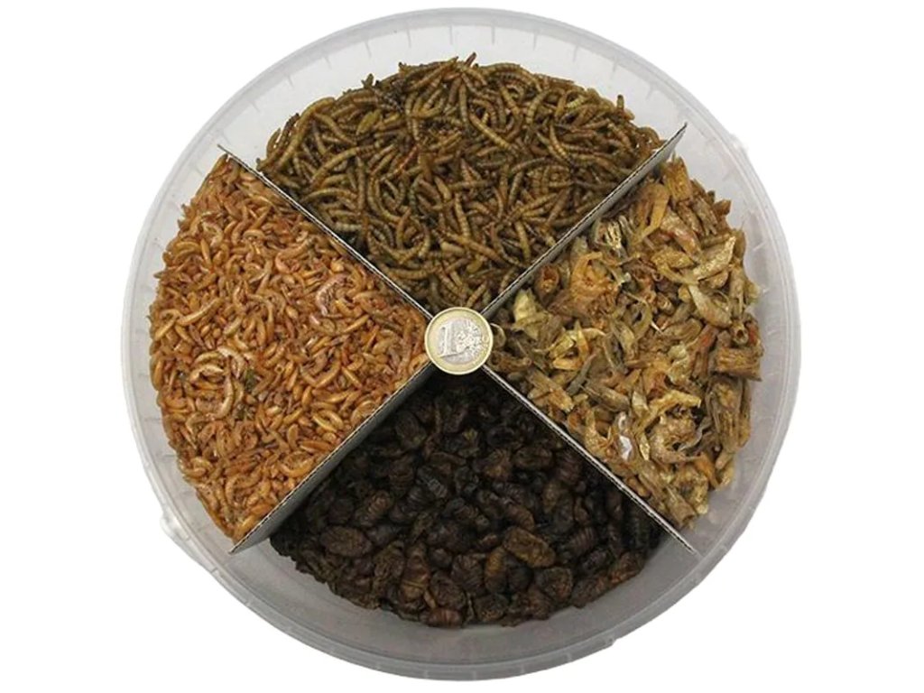 Mix sušených pochoutek – morušové larvy, krevety, mouční červi a gammarus, 5 l (0,9 kg)